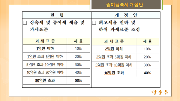 세금 부담 경감: 과세표준 구간 조정과 최고 세율 인하로 인해 전반적인 상속세 부담이 줄어들 것으로 예상됩니다.