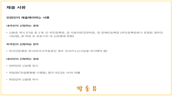 개인의 경우 신분증 하나만 있으면 됩니다. 주민등록증, 운전면허증, 여권 등 본인 확인이 가능한 신분증만 챙기면 끝! 법인은 조금 더 준비할 것이 많아요. 법인인감카드, 인감도장, 대리 발급 시엔 위임장까지 챙겨야 하죠. 비용은 개인은 600원, 법인은 1,000원에서 1,200원 정도가 듭니다.
