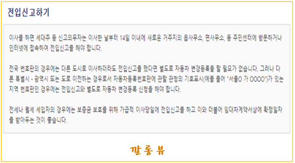 전입신고는 말 그대로 이사한 후에 "여기로 이사했습니다!"라고 동네 구청에 알리는 거예요. 이사한 날부터 14일 이내에 신고해야 하고, 빨리 할수록 좋아요. 전입신고가 완료되면 법적으로 새로운 주소로 인정받게 되니까요.