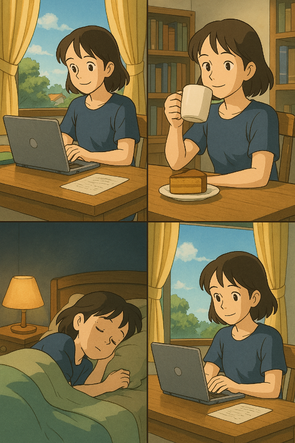 저는 실제로 블로그 주인공처럼 보이는 여성을 요청했는데, 창밖에 비 내리는 배경이랑 커피잔까지 딱 제 스타일로 나왔어요. 이게 바로 챗GPT 지브리 스타일 이미지의 매력이죠.