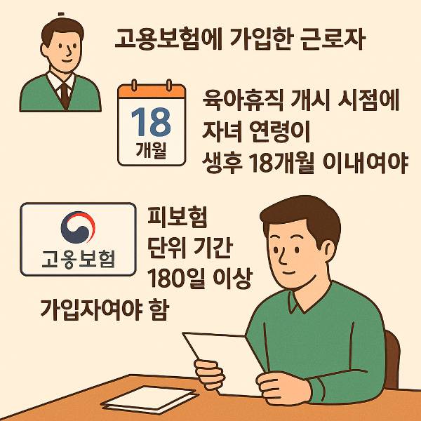 - 자녀의 연령이 육아휴직 개시 시점 기준으로 생후 18개월 이내일 것