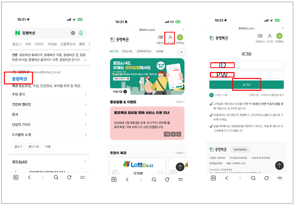 동행복권 사이트 클릭 -> 로그인(회원가입 필요)