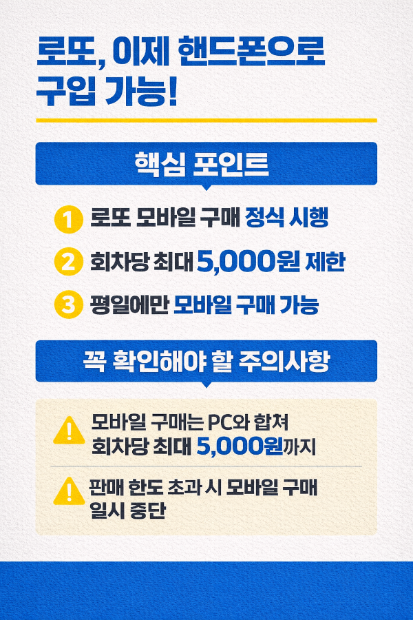 모바일 홈페이지를 통한 로또 구매가 공식적으로 가능해졌습니다.