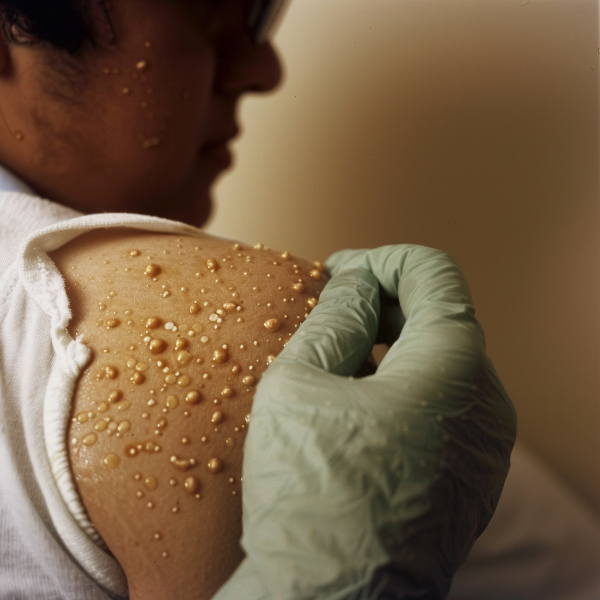 - 발진기: 전구 증상 후, 특징적인 수두 발진이 나타납니다. 처음에는 몸통, 얼굴, 두피에 붉은 반점이 나타나며, 이후 몇 시간 내에 작은 물집으로 발전합니다. 이 물집들은 가렵고, 몇 일 내에 건조해지면서 껍질을 형성합니다. 새로운 발진은 여러 단계에 걸쳐 3~5일 동안 나타날 수 있습니다.
