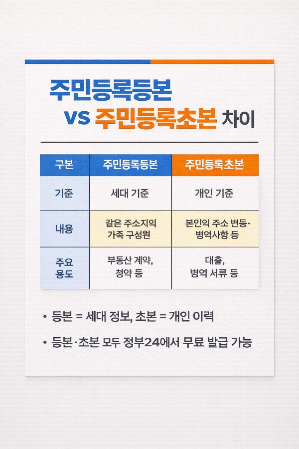 ※ 아래에서 등본과 초본 차이를 한눈에 정리했습니다.