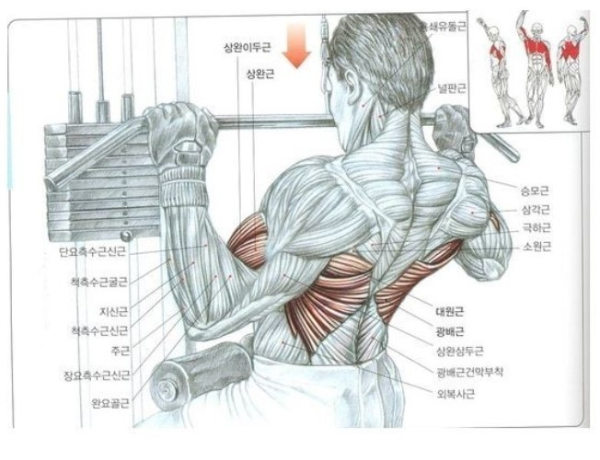 - 운동 실행: 팔꿈치를 살짝 구부리고, 어깨를 내리면서 바를 가슴 부위까지 당깁니다. 이때 등 근육에 힘이 들어가는 것을 느껴야 합니다.